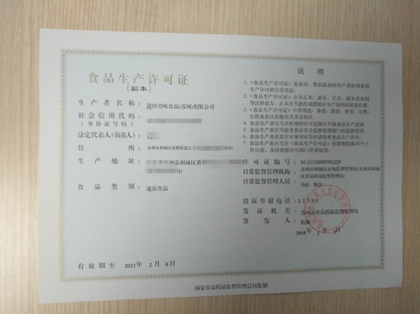 道田美味食品(苏州)有限公司